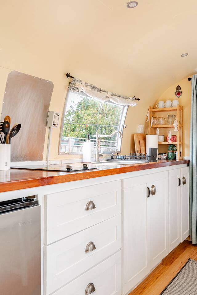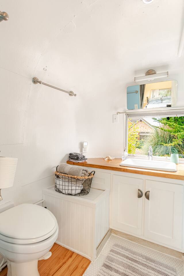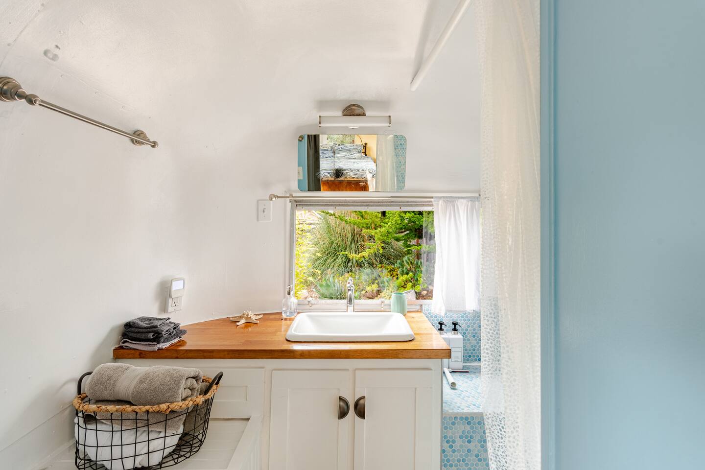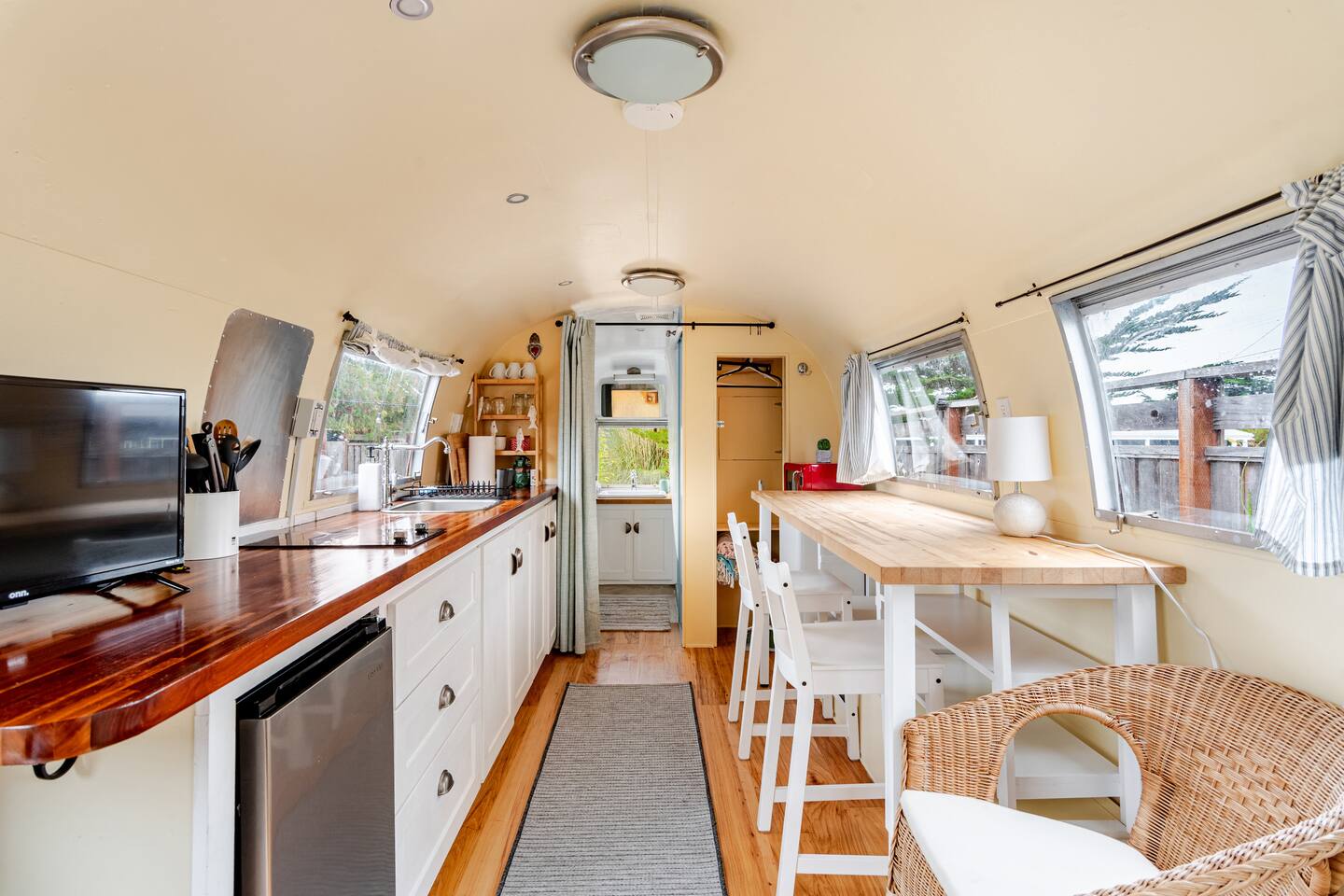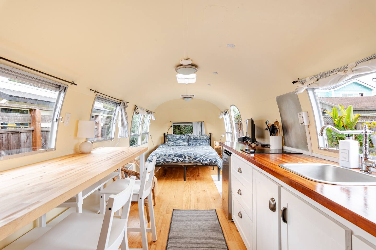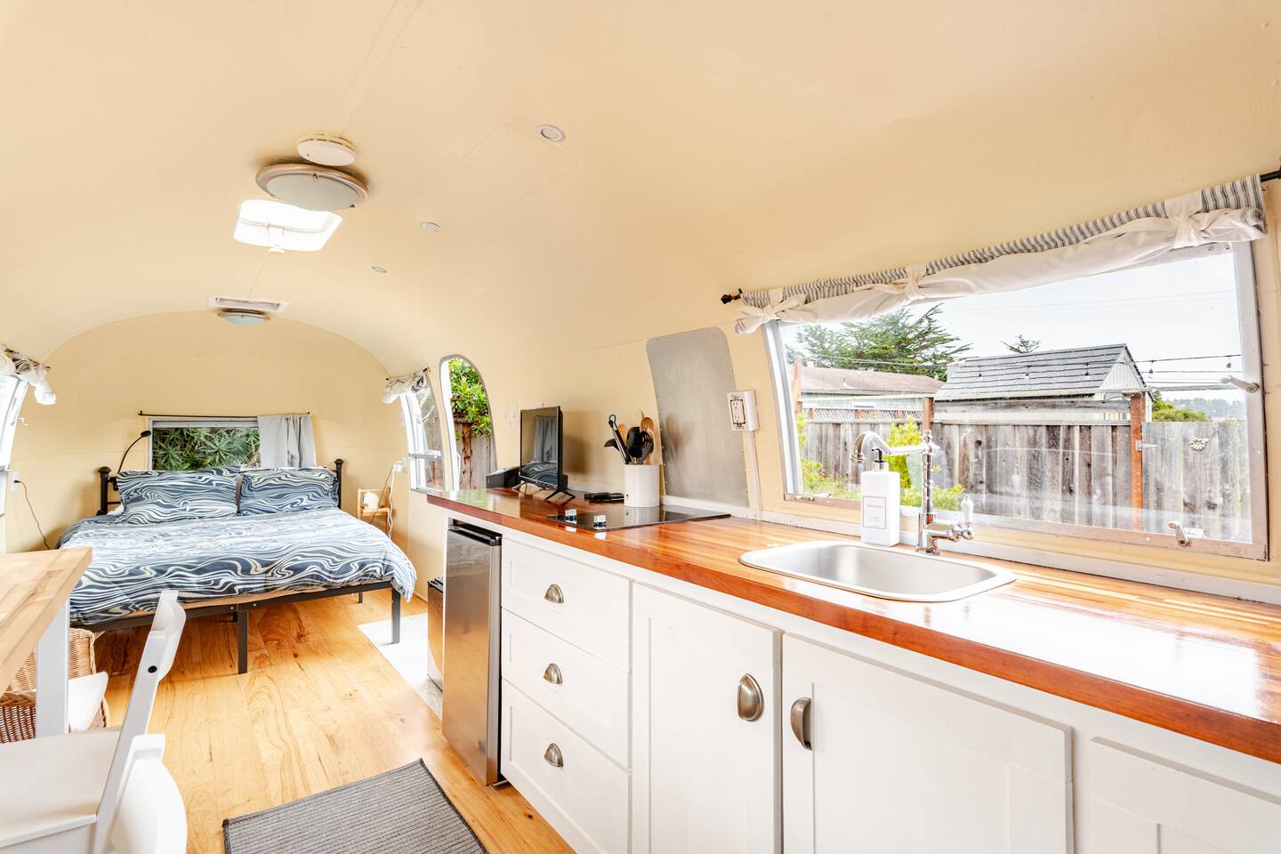 This 1967 Airstream camper is a blast from the past but with all the modern bits you need. About 300 yards away from Poplar beach, you'll be able to drift off to sleep to the sound of waves .Cook light meals in the well appointed kitchen and rest your head in an ultra-comfy Queen-sized bed . Enjoy the private fenced-in yard with a fire pit with your pup. Small but mighty.
