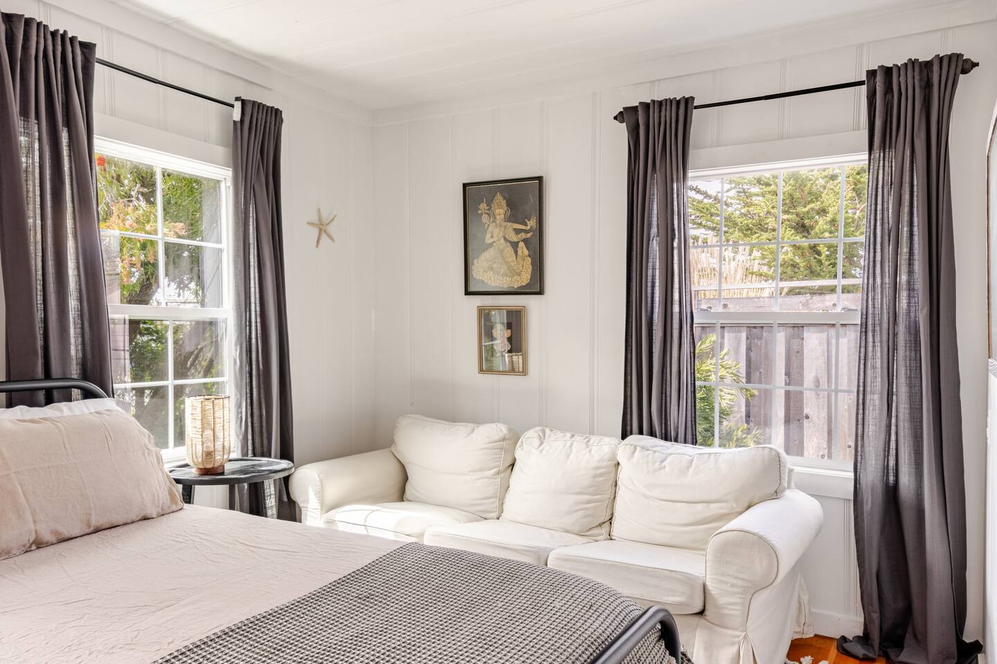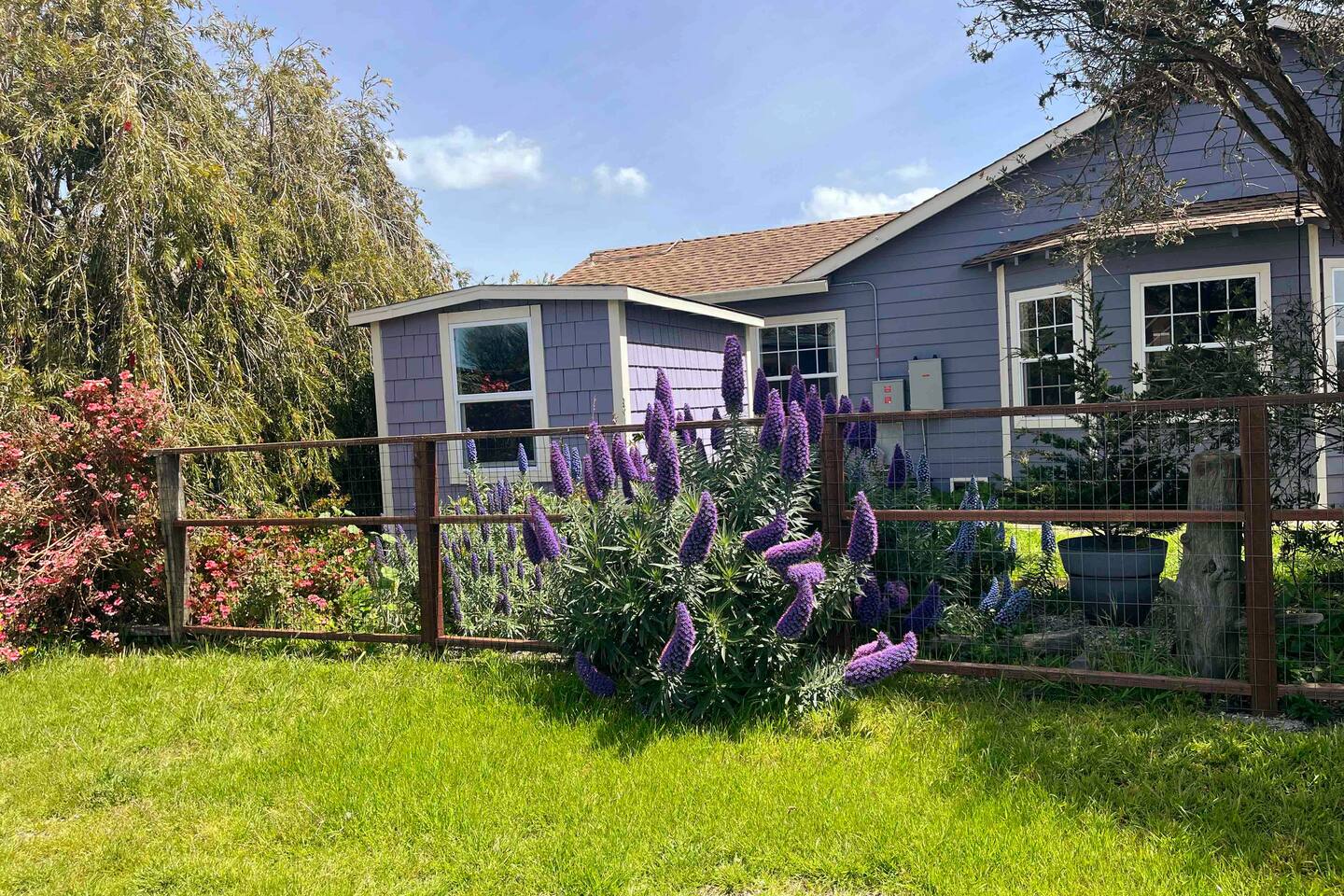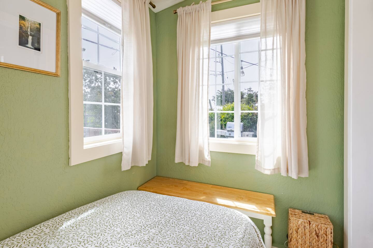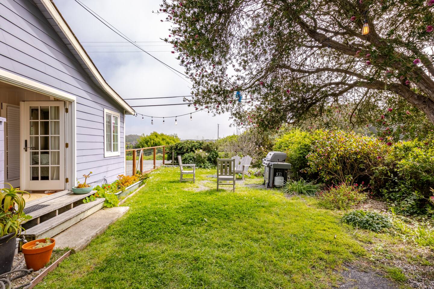 This charming coastal getaway is just a 5-minute stroll to the ocean, nestled beside wide open spaces with lush southern views. The 2-bed, 2-bath home with a den comfortably sleeps five. Wake up to falcons soaring, hummingbirds buzzing around the bottlebrush blooms, and the sound of waves crashing beyond the bluffs. Your pup will love the fully fenced yard, perfect for play and relaxation. A peaceful retreat in a stunning location — rarely available.