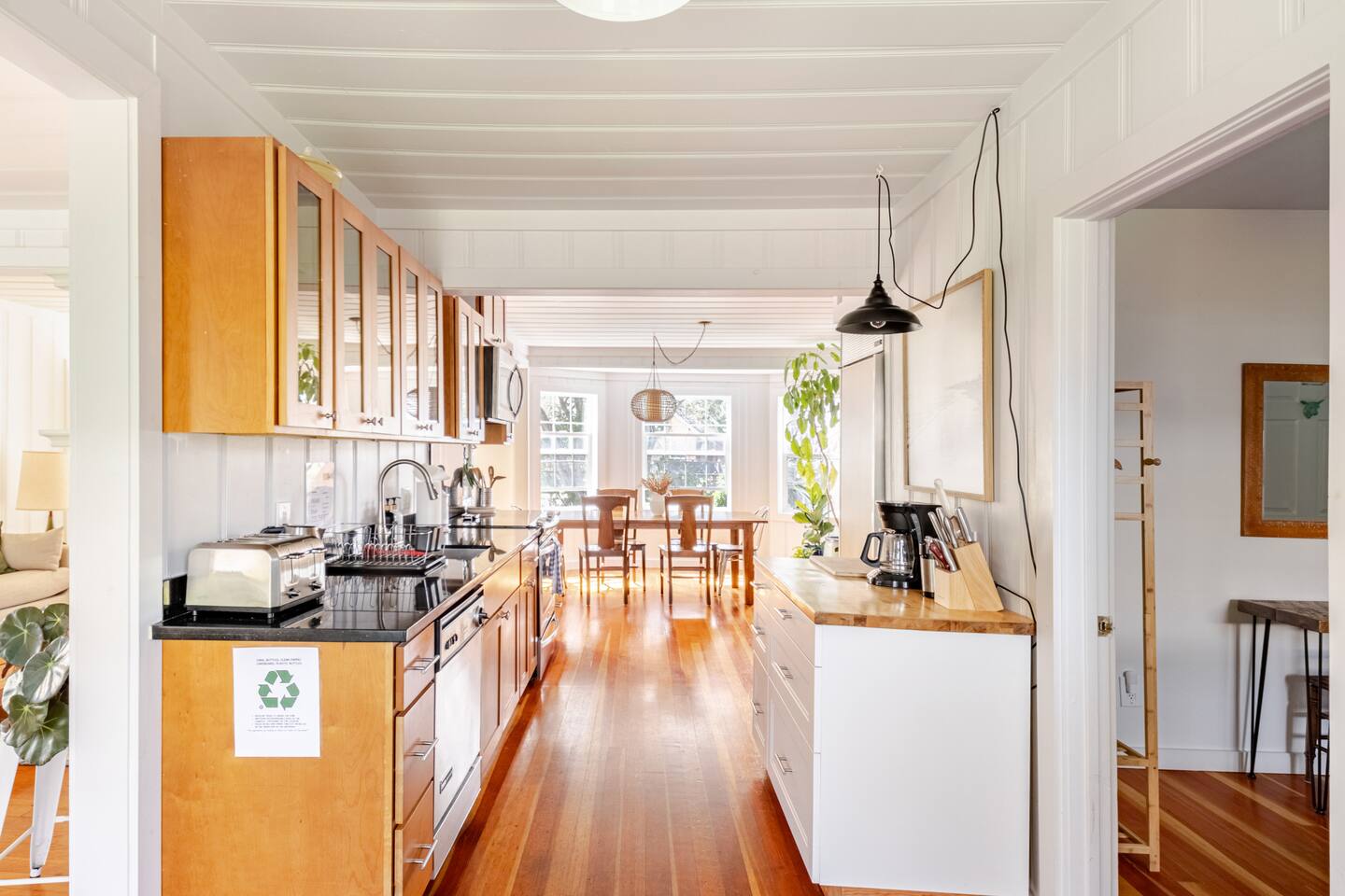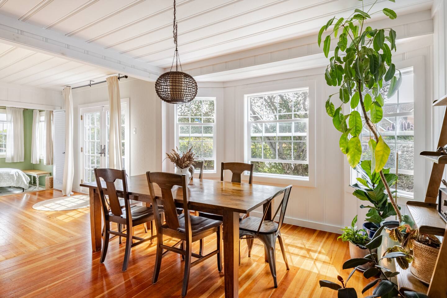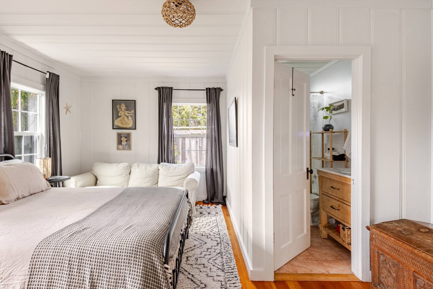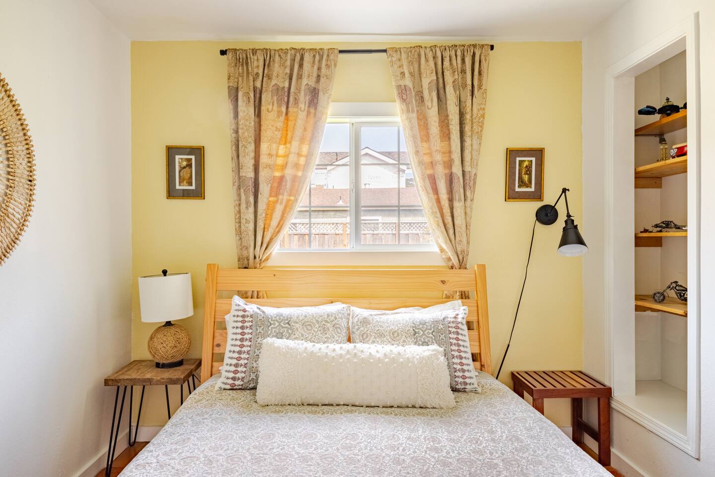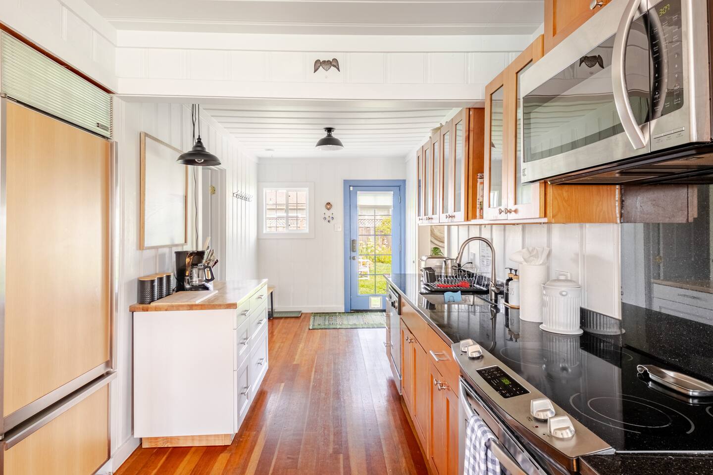 This charming coastal getaway is just a 5-minute stroll to the ocean, nestled beside wide open spaces with lush southern views. The 2-bed, 2-bath home with a den comfortably sleeps five. Wake up to falcons soaring, hummingbirds buzzing around the bottlebrush blooms, and the sound of waves crashing beyond the bluffs. Your pup will love the fully fenced yard, perfect for play and relaxation. A peaceful retreat in a stunning location — rarely available.