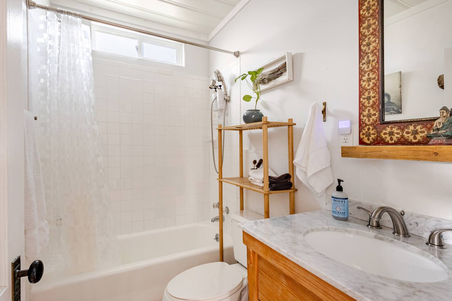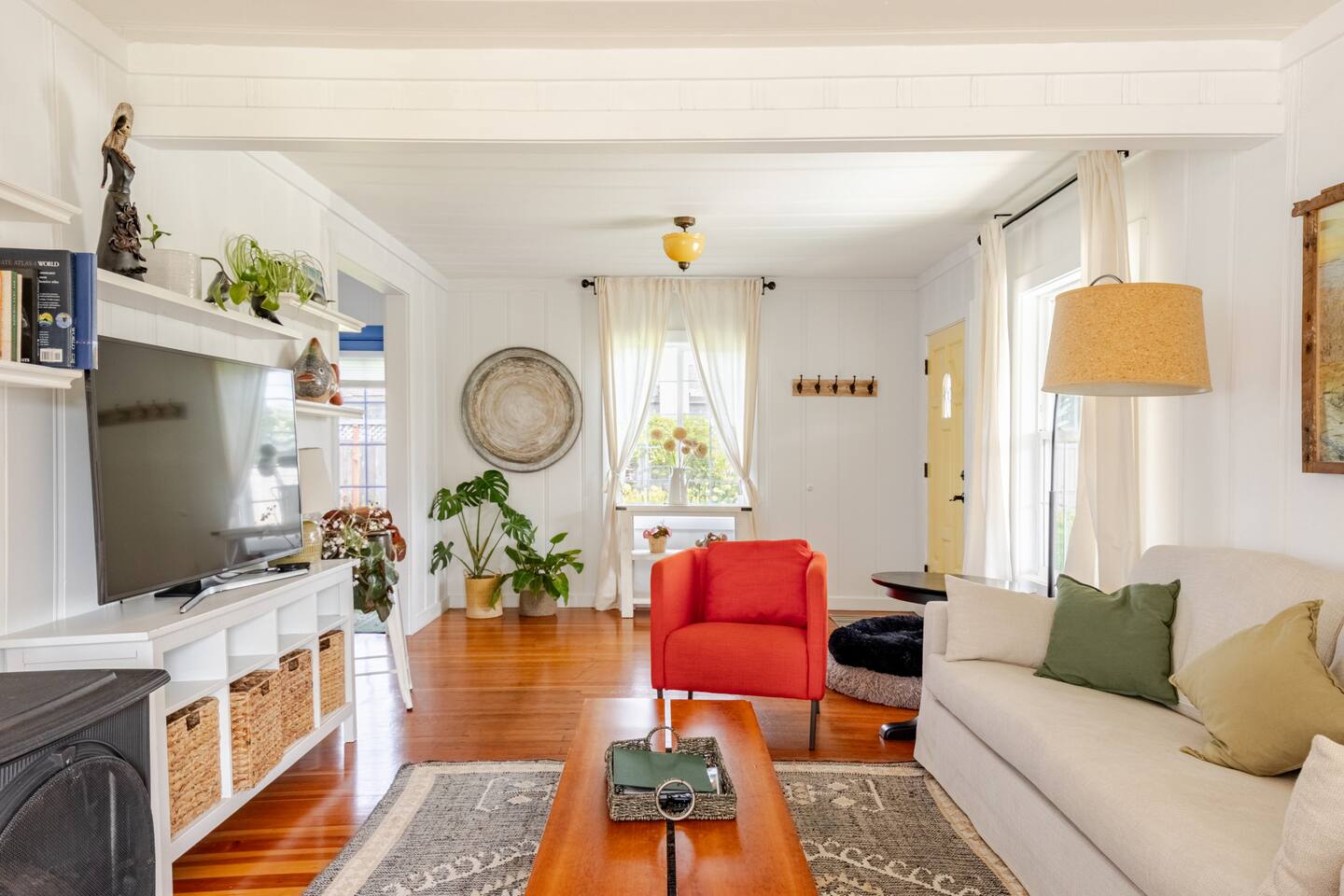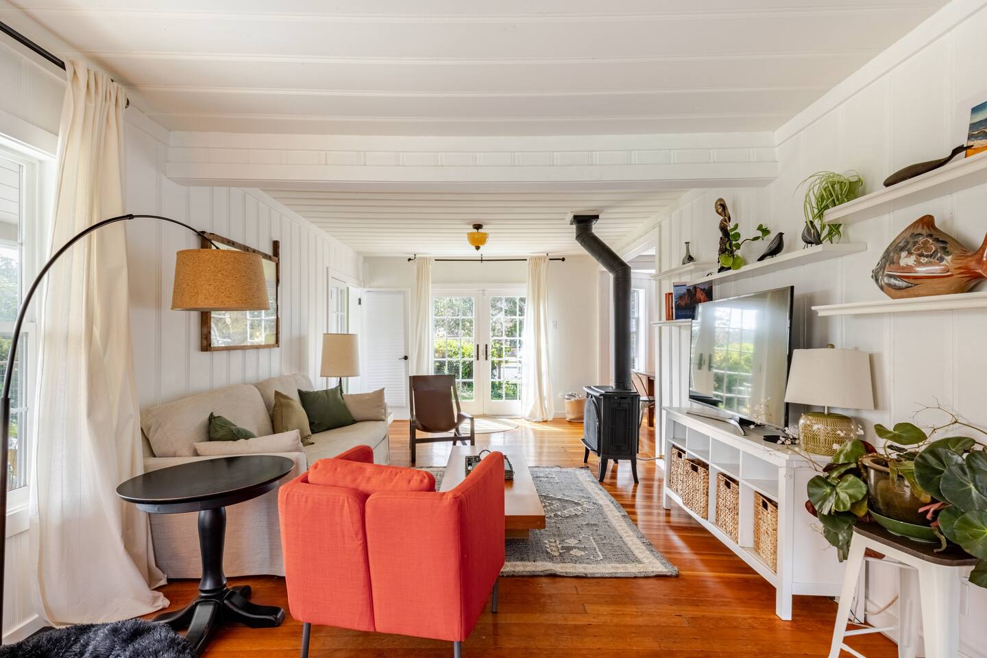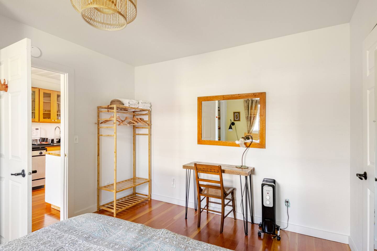 This charming coastal getaway is just a 5-minute stroll to the ocean, nestled beside wide open spaces with lush southern views. The 2-bed, 2-bath home with a den comfortably sleeps five. Wake up to falcons soaring, hummingbirds buzzing around the bottlebrush blooms, and the sound of waves crashing beyond the bluffs. Your pup will love the fully fenced yard, perfect for play and relaxation. A peaceful retreat in a stunning location — rarely available.