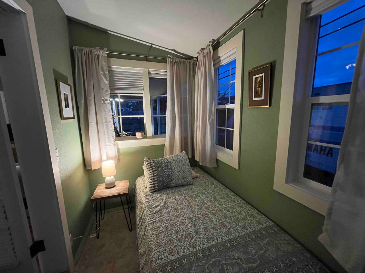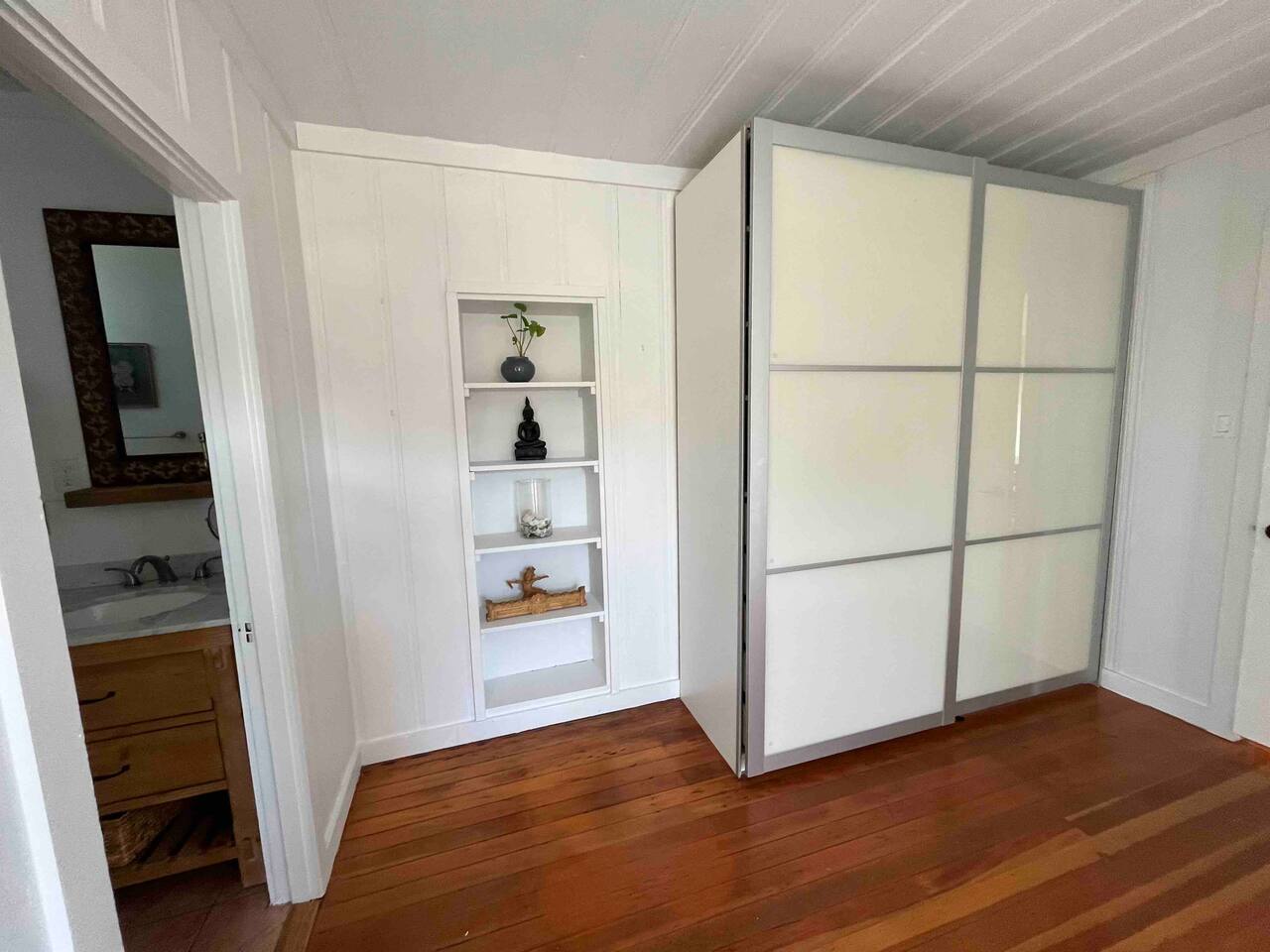 Please note that you have to walk through the bathrooms to access both of the bathrooms. There isn't a common bathroom. There is a gas heating stove to heat up the living space. Each bedroom has its own electric space heater.